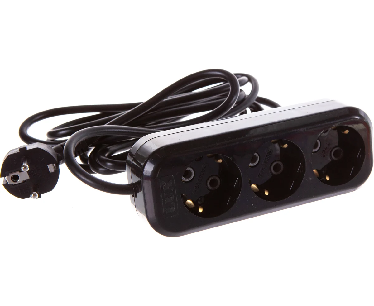 Сетевой удлинитель LUX У3-Е-03 3-местный с з/к 250В/16а/3м черный