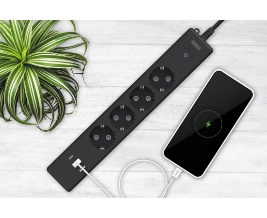 USB-порт Type-A: 2 шт. USB-порт Type-C: 1 шт. Поддержка быстрой зарядки. Защитные шторки. Кнопка включения/отключения
