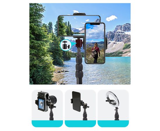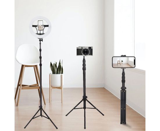 Штатив Jmary MT-45 – простой инструмент, облегчающий процесс съемки фотографий и видеороликов. Трехногая стойка разработана специально для фото или видеокамеры. С ее помощью снимки будут получаться качественными и четкими даже у начинающего фотографа. А видеозаписи – плавными, а не трясущимся, как будто оператор прыгал на месте. В комплекте со штативом идет держатель для телефона с креплением для вспышки или микрофона.Стойка сделана из надежного и износостойкого материала: металла. Ее вес составляет всего 480 граммов. На нее можно устанавливать гаджеты весом до 3 кг.Благодаря телескопической конструкции высоту штатива можно изменять от 61 см до 168 см. В сложенном состоянии она составляет 51 см.У Jmary MT-45 три ноги. Они раздвигаются и фиксируются в одном положении. На каждой ножке имеется прорезиненый наконечник, поэтому стойка устойчиво стоит на любой поверхности, а не скользит.Сверху штатива находится стандартный винт 1/4". На него можно закрепить раздвижной зажим для телефона из комплекта, фотоаппарат или видеокамеру, если в них предусмотрена резьба.