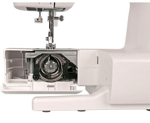 Дополнительно освещение, реверс, регулятор натяжения нити, регулировка ширины зигзага, регулировка длины стежка, максимальная скорость 500 об/мин, дополнительный подъем лапки, горизонтальное расположение катушки, встроенный нитеобрезатель