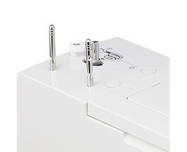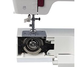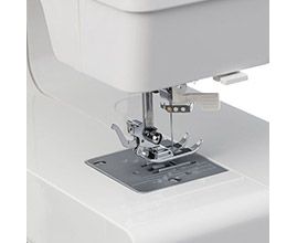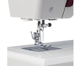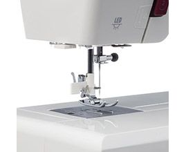 Штопальная пластина закрывает рейки нижнего транспортёра, что очень удобно для выполнения свободно-ходовой стёжки и пришивания пуговиц. В комплекте с машиной поставляются все необходимые аксессуары и расширительный столик, что делает работу с машиной еще более комфортной.
