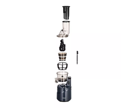 В случае загрязнения корпус легко очистить мягкой тканью или губкой. Для мытья фильтра в комплекте к соковыжималке прилагается щётка, помогающая вычистить остатки мякоти. Благодаря компактной конструкции соковыжималка не занимает много места на кухне.