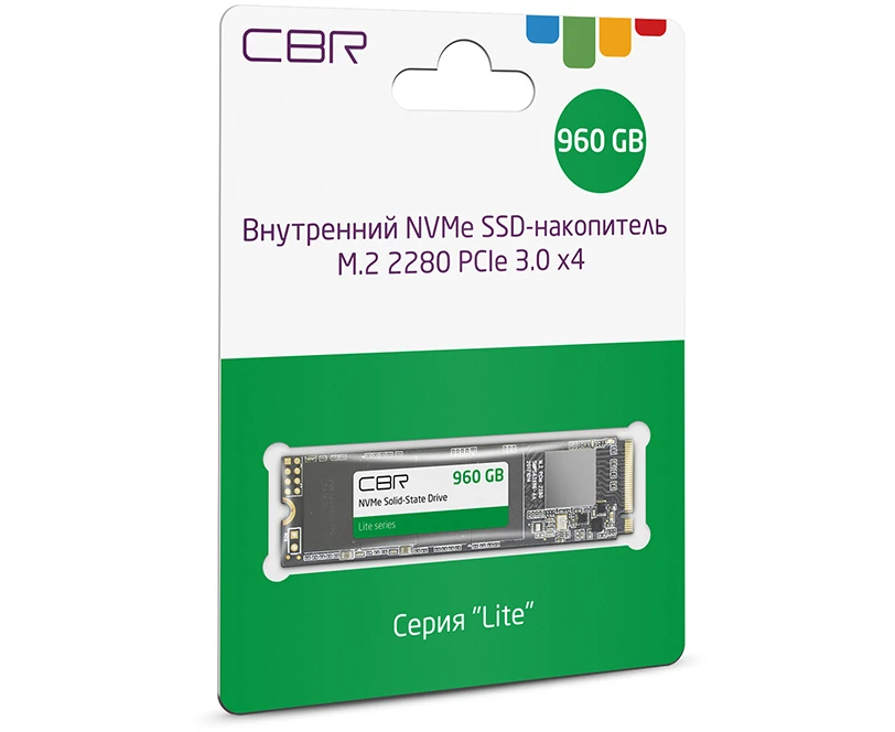 SSD CBR Lite SSD-960GB-M.2-LT22, 960 GB, M.2 2280, PCIe 3.0 x4, NVMe 1.3, SM2263XT, 3D TLC NAND, R/W speed up to 2