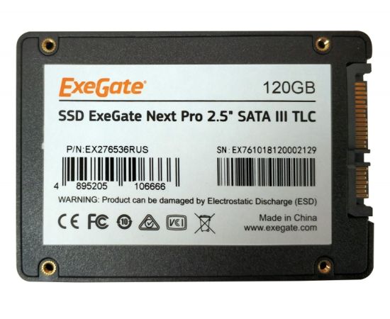 SSD 2.5" 120GB SATA3 ExeGate Next Pro (EX276536RUS) (TLC, SM2258, R/W: up to 507/350MB/s, MTBF: 1.8 млн. ч)