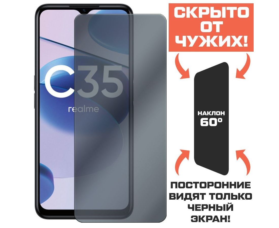 Стекло защитное гибридное Антишпион Krutoff для Realme C35