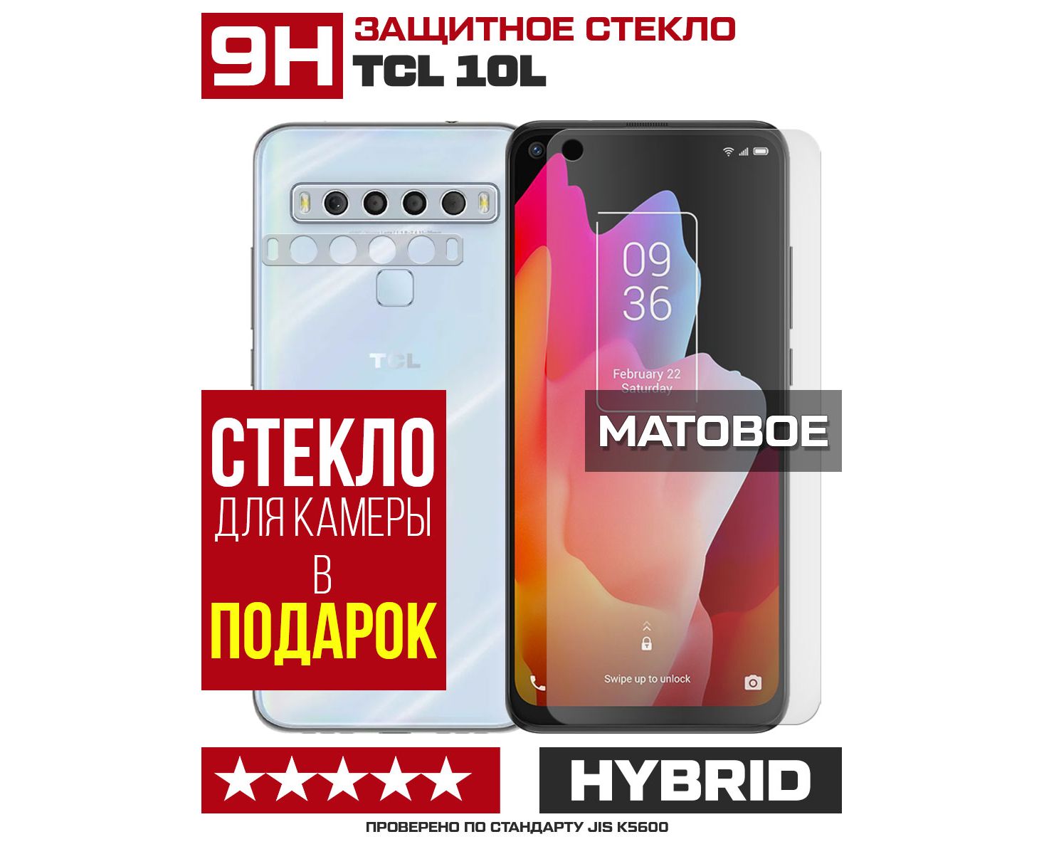 Стекло защитное гибридное МАТОВОЕ Krutoff для TCL 10L + защита камеры (2 шт.)