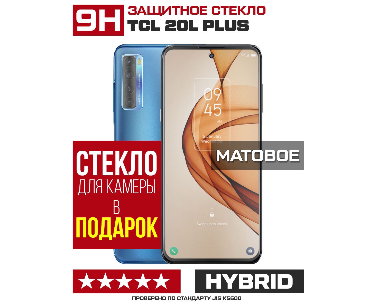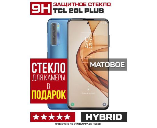 Стекло защитное гибридное МАТОВОЕ Krutoff для TCL 20L Plus + защита камеры (2 шт.)