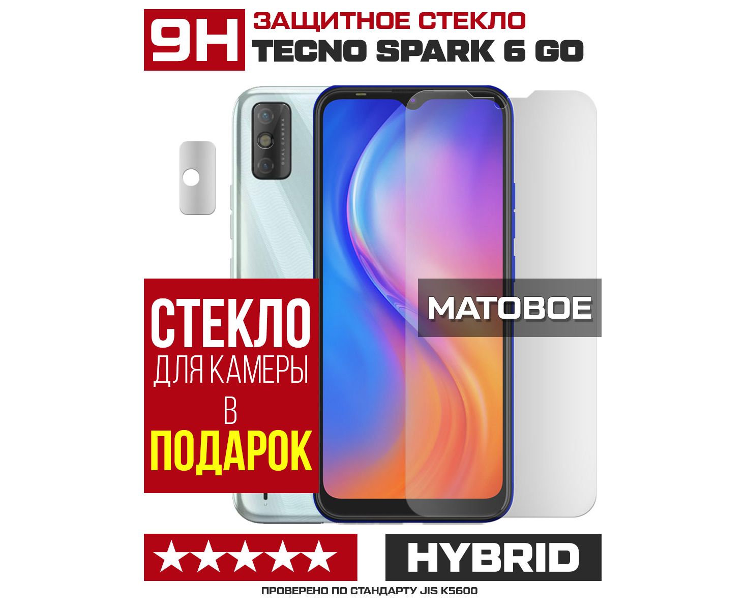 Стекло защитное гибридное МАТОВОЕ Krutoff для Tecno Spark 6 Go + защита камеры (2 шт.)
