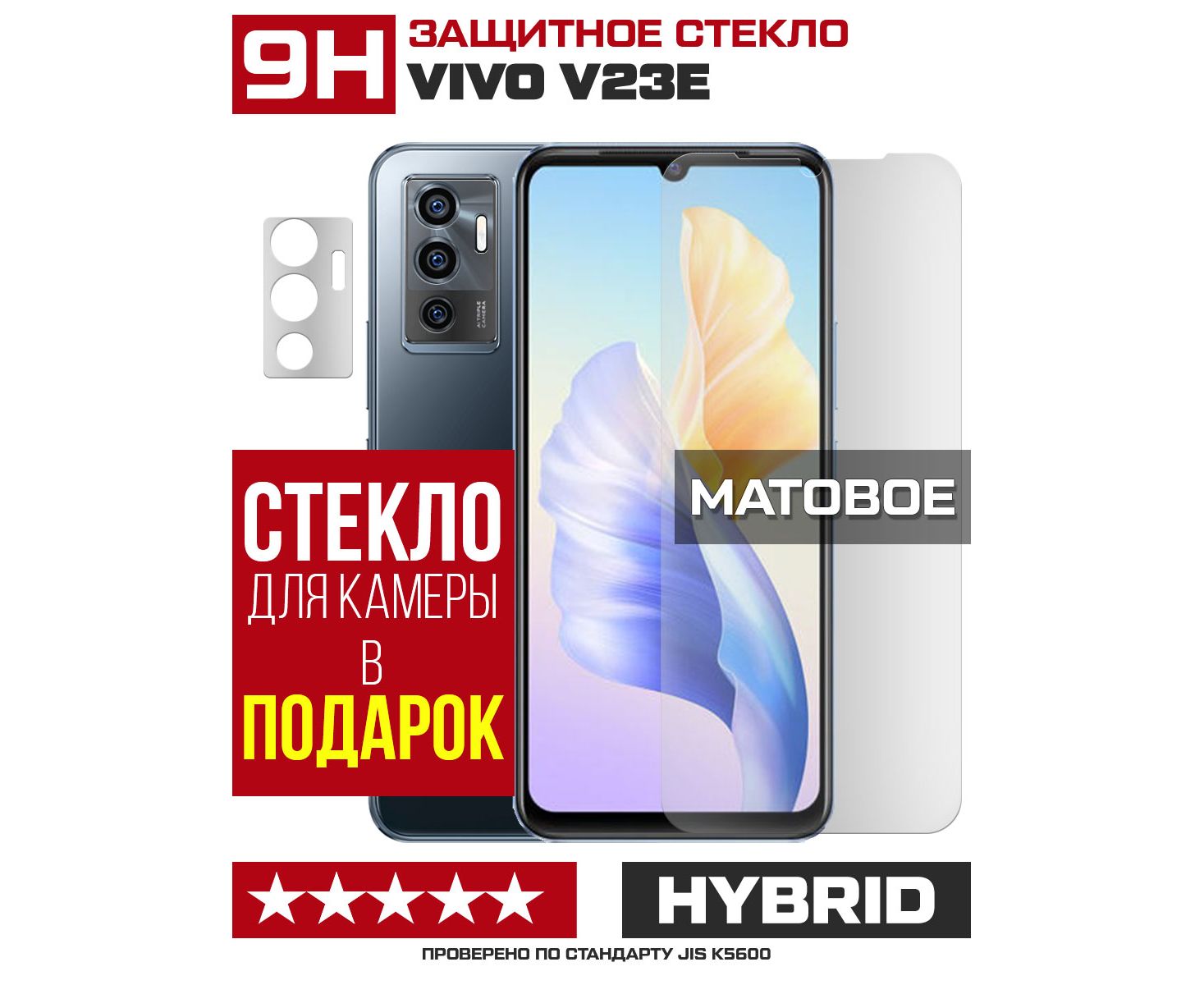 Стекло защитное гибридное МАТОВОЕ Krutoff для Vivo V23e + защита камеры (2 шт.)