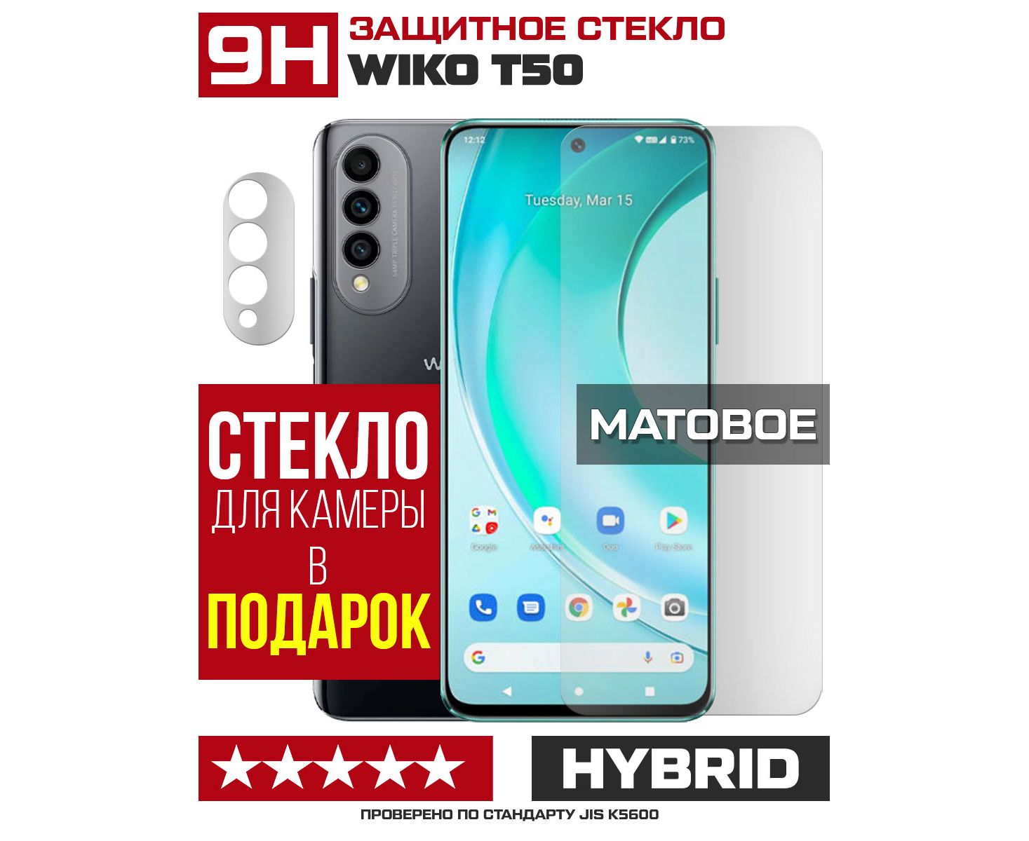 Стекло защитное гибридное МАТОВОЕ Krutoff для Wiko T50 + защита камеры (2 шт.)