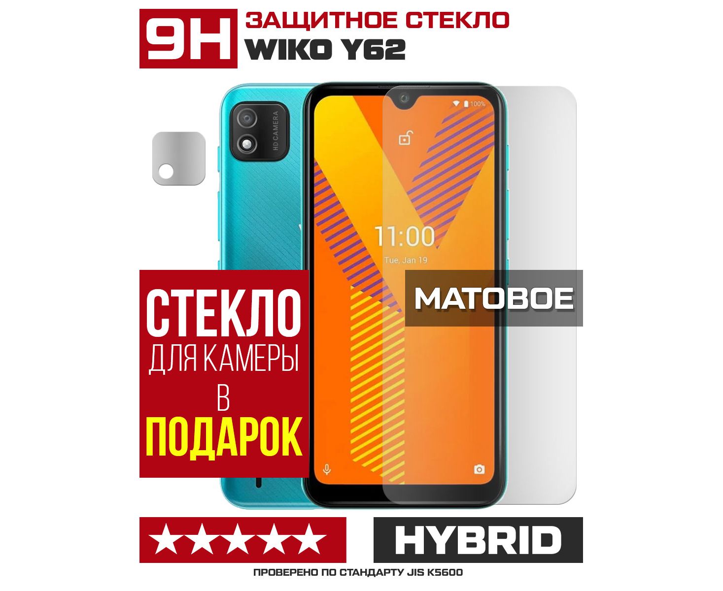 Стекло защитное гибридное МАТОВОЕ Krutoff для Wiko Y62 + защита камеры (2 шт.)