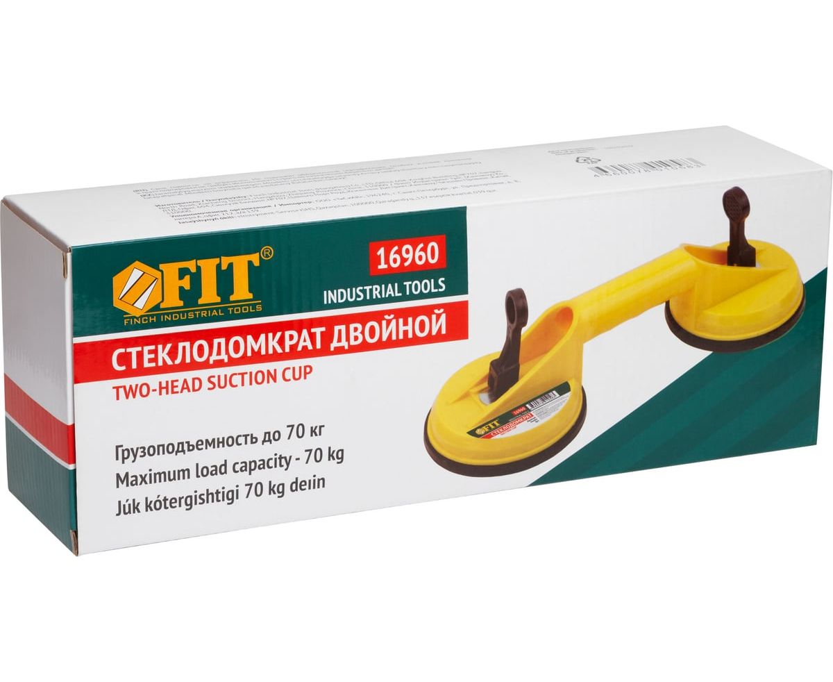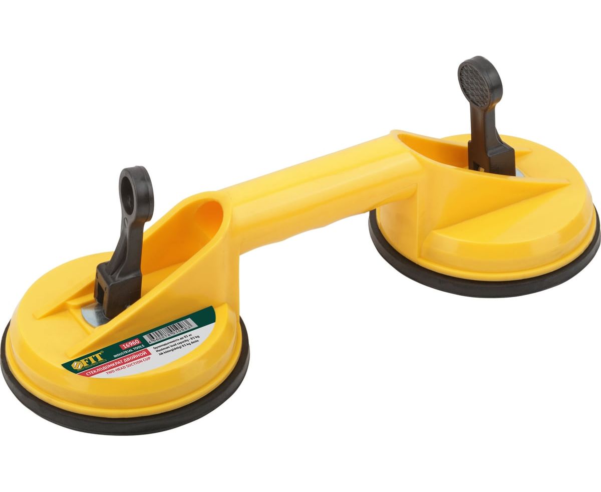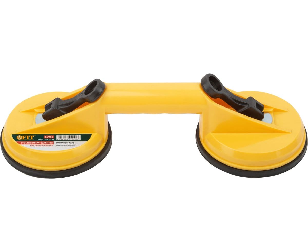 Двойной стеклодомкрат FIT IT 16960 - простой инструмент, который используется для переноски и монтажа стекол, глазурованной кафельной плитки и пластика. Данная модель имеет вакуумный принцип работы. Резиновые присоски обеспечивают мягкий контакт с изделием не повреждая его. Стеклодомкрат легко транспортируется одним человеком.