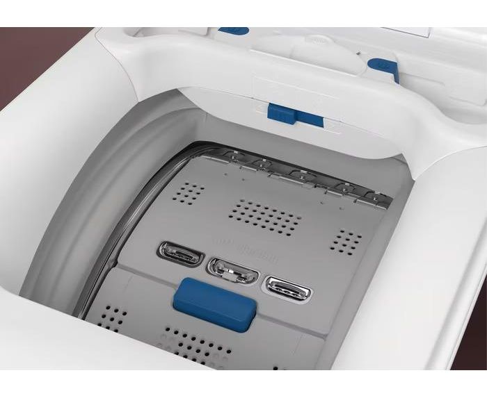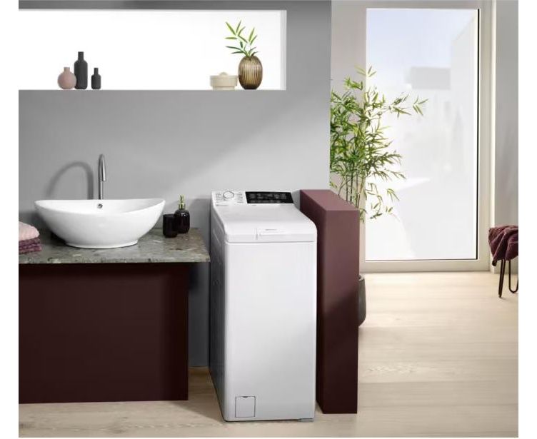 Модель имеет вертикальную загрузку, что обеспечивает удобство в использовании. Размеры машины (90.8 см высота, 39.7 см ширина и 59.9 см глубина) позволяют ей идеально вписаться в любой интерьер. Объем барабана составляет 42 литра, что позволяет стирать до 6 кг белья за один цикл.