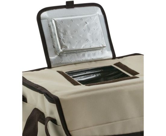 Сумка оборудована прочными ручками и широким ремнем для переноски на плече. Есть наружный вместительный карман для хранения столовых приборов, специй, чая.