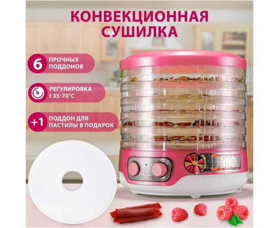 Сушилка для овощей Мастерица EFD-3061 розовый перламутр 6 поддонов + 1 поддон для пастилы в подарок