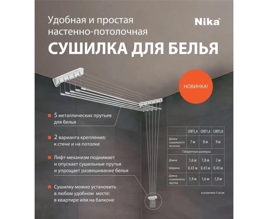 Настенно-потолочная сушилка Nika 7м СНП 1.4 белая НИКА-СНП1.4/БЕЛАЯ предназначена для сушки белья в помещении.