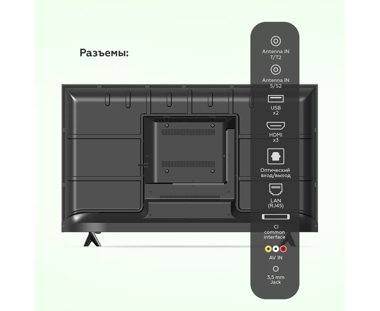 HDMI, USB, CI+, RJ-45 (Ethernet), 3.5 мм, Композитный