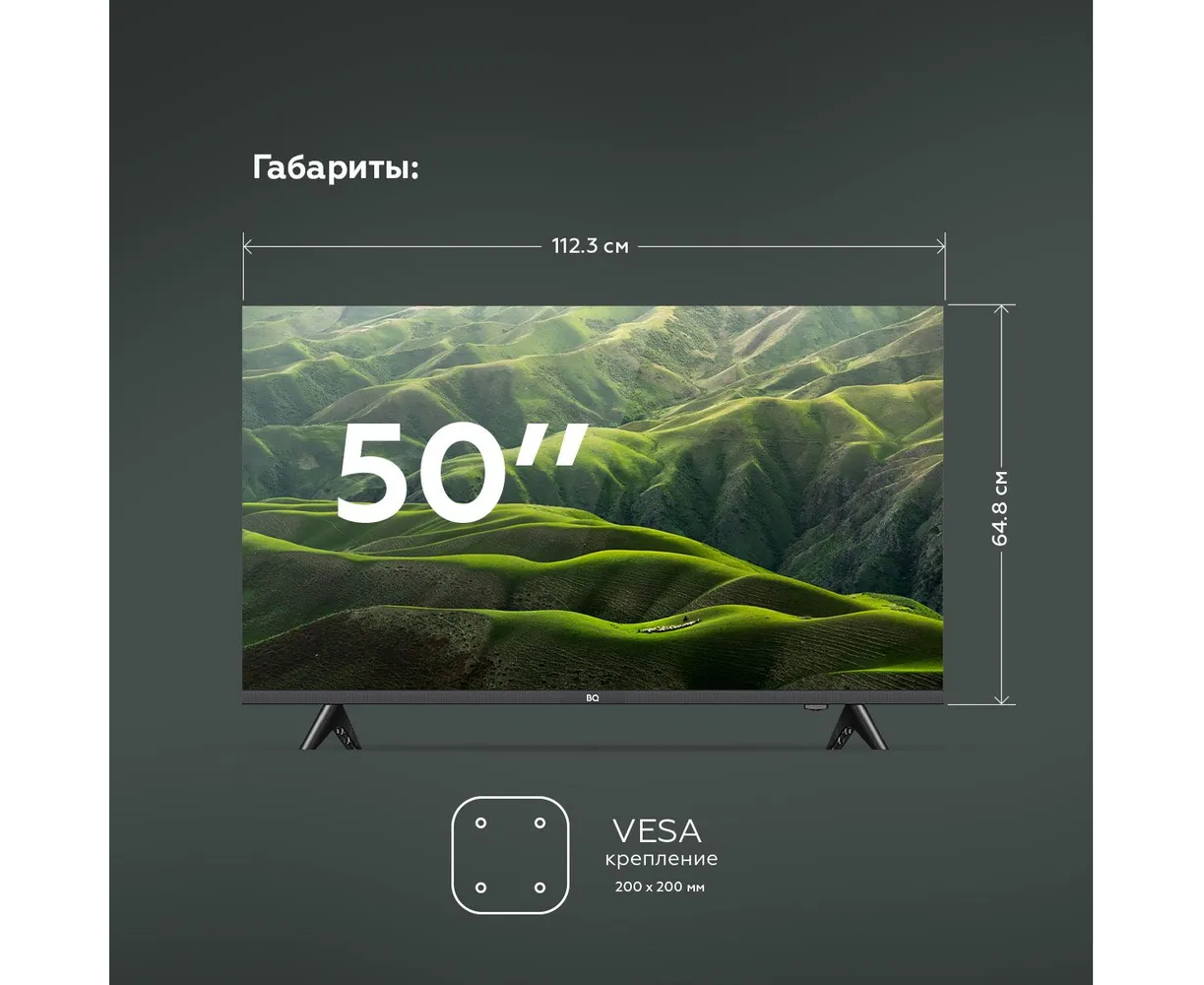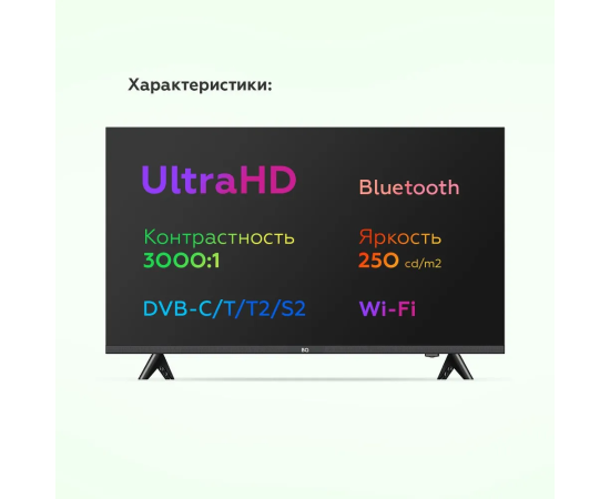 Характеристики: BQ Телевизор 50FS32B / Smart TV 50" 4K UHD, черный матовый