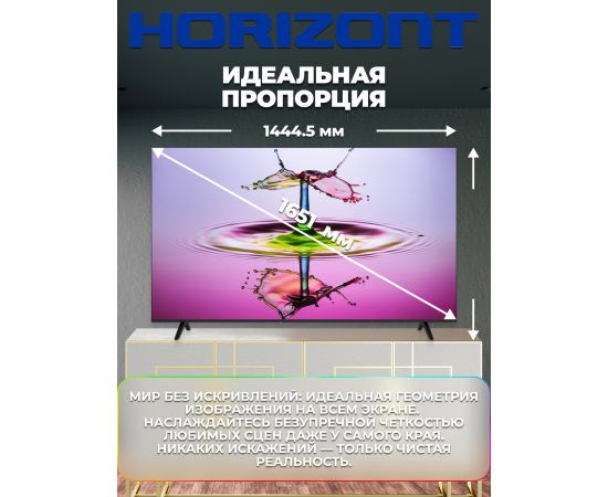 65" Телевизор Horizont 65UHDS25BG черный 3840х2160, 4K Ultra HD, 60 Гц, Wi-Fi, Smart TV, Google TV