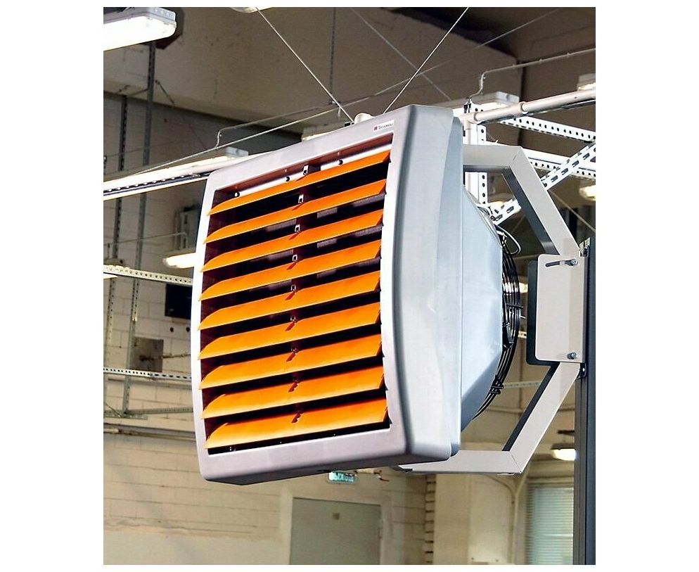 Водяной тепловентилятор Тепломаш КЭВ-32M3,5W2 233028 для отопления офисных, административных, складских, промышленных и других помещений. Монтаж - вертикальный или горизонтальный. Монтажный кронштейн с регулируемыми углами поворота и наклона тепловентилятора, и регулируемые жалюзи позволяют направить воздушную струю в рабочую область.