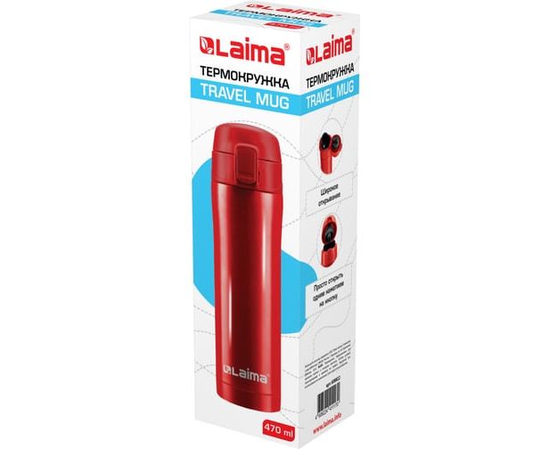 Термокружка LAIMA с двойной стальной стенкой изготовлена из нержавеющей стали марки 304 медицинского уровня. Сконструирована по вакуумной технологии.