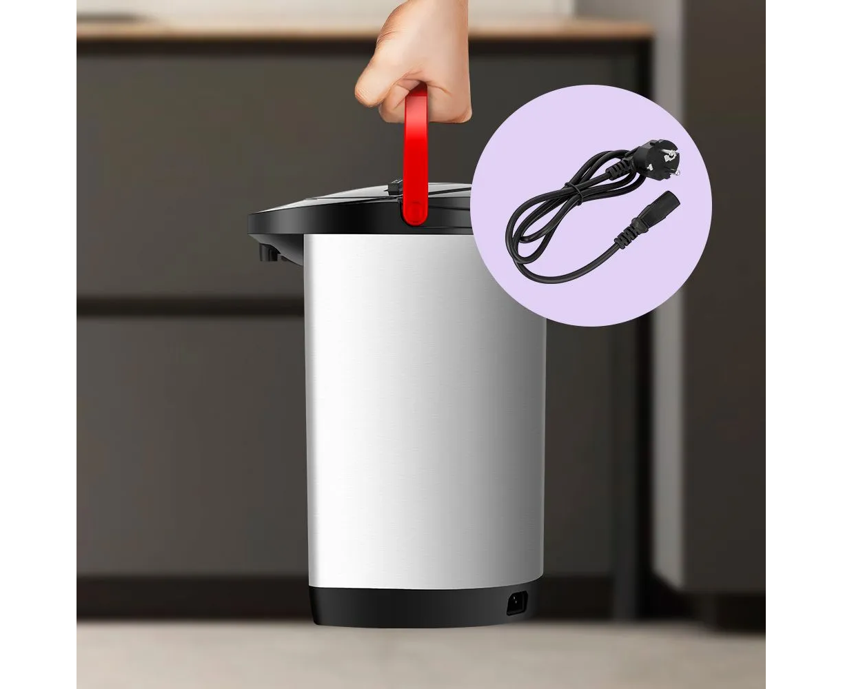 Корпус термопота состоит из пластика и нержавеющей стали, а резервуар — из нержавеющей стали. Двойные стенки термопота помогают сохранить тепло и реже включать нагрев, а общая ёмкость в 5 л освободит от мыслей о постоянном пополнении резервуара.