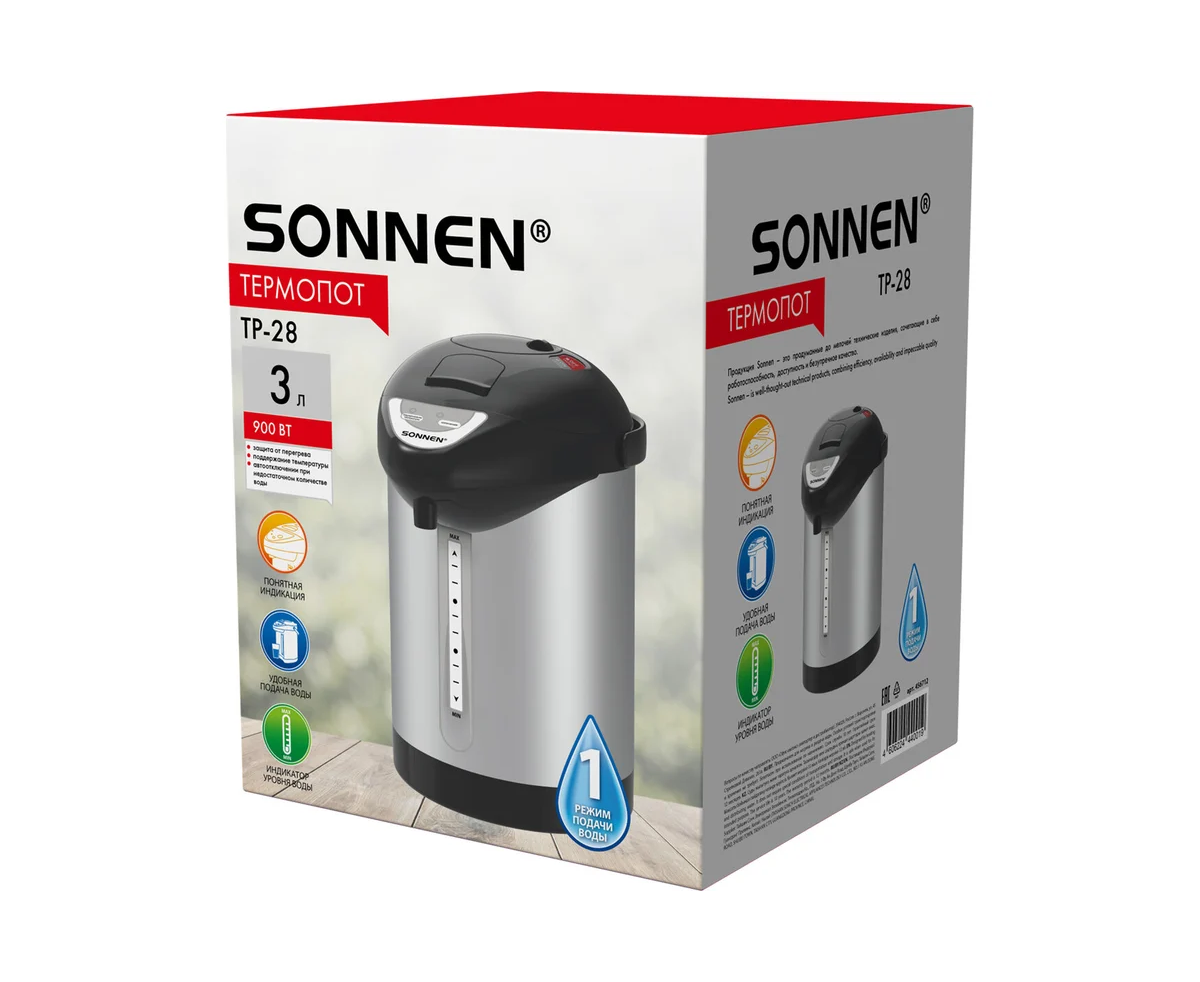 Термопот SONNEN TP-28 – современный и функциональный прибор, который обеспечит постоянное наличие горячей воды для приготовления чая, кофе или других напитков.