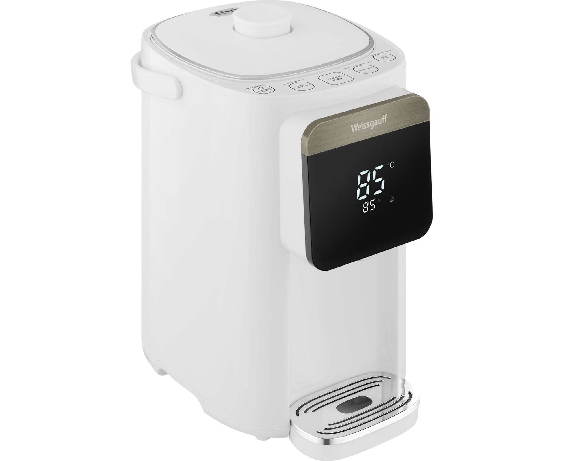 Дизайн, выполненный в белом цвете - станет финальным штрихом в совершенстве великолепного облика этой модели. Каждый раз, взаимодействуя с термопотом от Weissgauff, вы будете в полной мере ощущать, как он способен нагревать не только воду, но и согревать душу, став настоящим сердцем вашего уютного семейного домашнего очага!