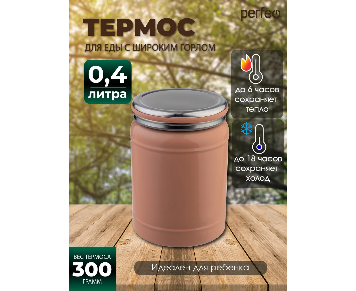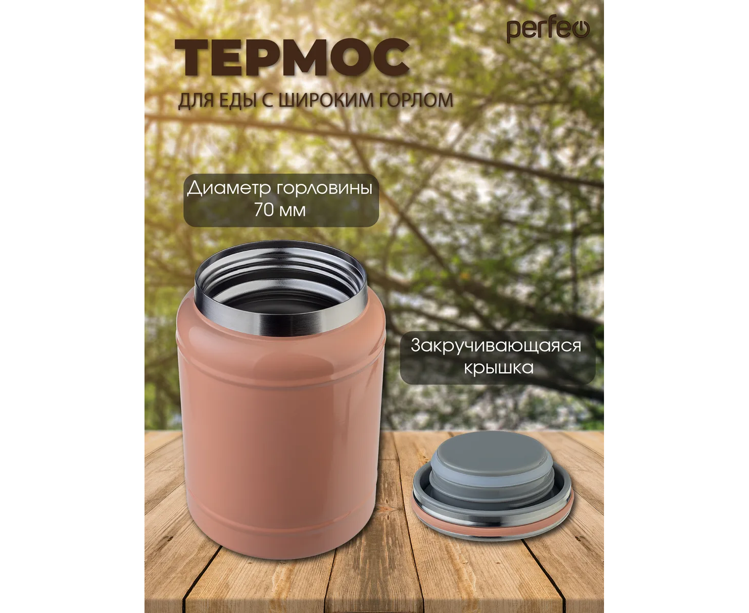 Термос для еды PERFEO с широким горлом, объем 0,4 л., розовый, (Арт. PF_E2318)