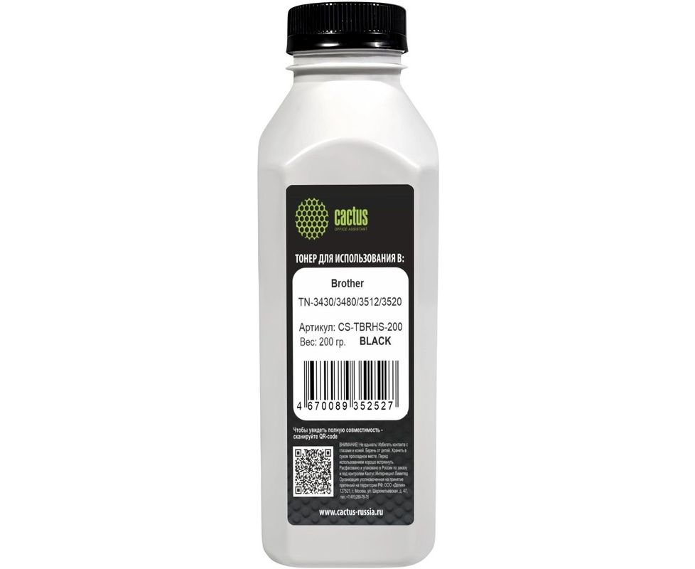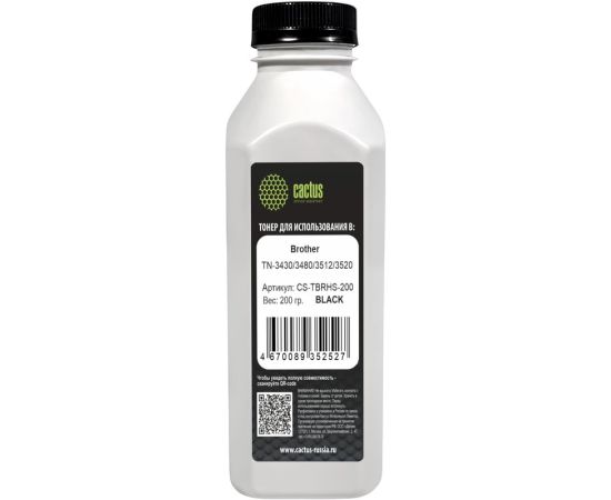 Тонер Cactus CS-TBRHS-200 черный флакон 200гр для принтера Brother TN-3430/3480/3512/3520
