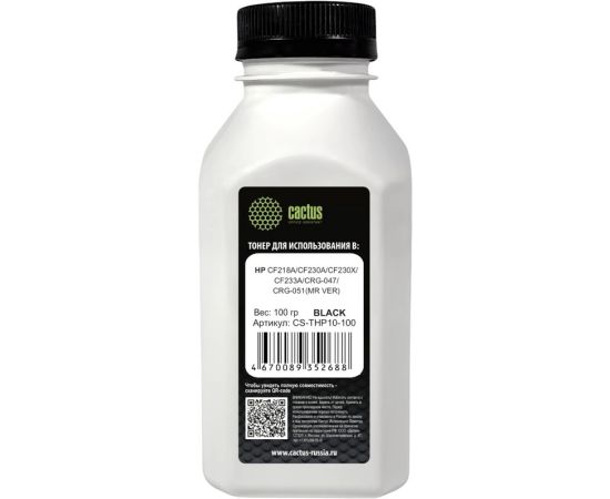 Тонер Cactus CS-THP10-100 черный флакон 100гр для принтера HP CF218A/CF230A/CF230X/CF233A/CRG-047/CRG-051( MR VER)