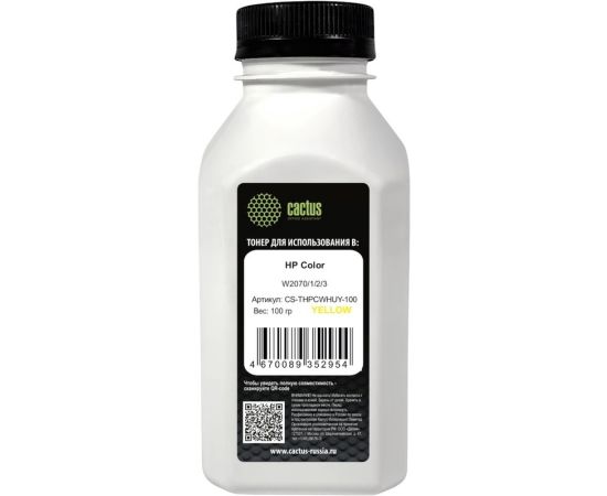 Тонер Cactus CS-THPCWHUY-100 желтый флакон 100гр для принтера HP Color W2070/1/2/3
