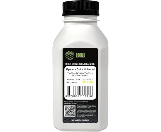 Тонер Cactus CS-TKYCU2Y-LT-100 желтый флакон 100гр для принтера Kyocera Color Universal TK-52xx/TK-54xx/TK-83xx/TK-85xx/TK-88xx