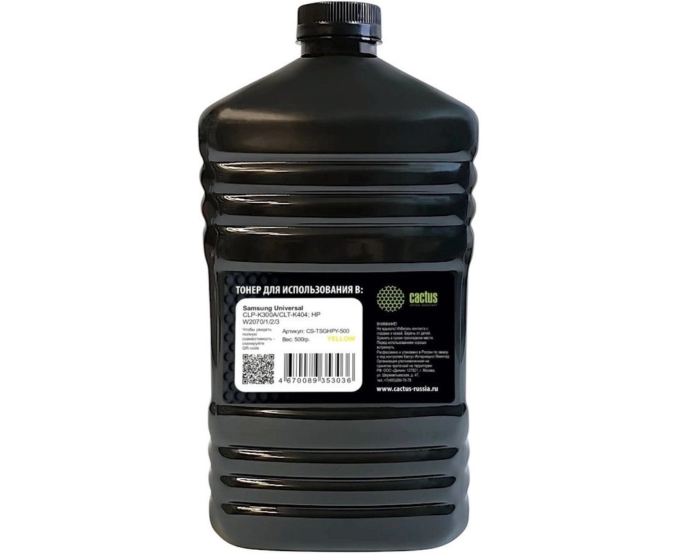 Тонер Cactus CS-TSGHPY-500 желтый флакон 500гр для принтера Samsung CLP-K300A/CLT-K404/HP W2070/1/2/3