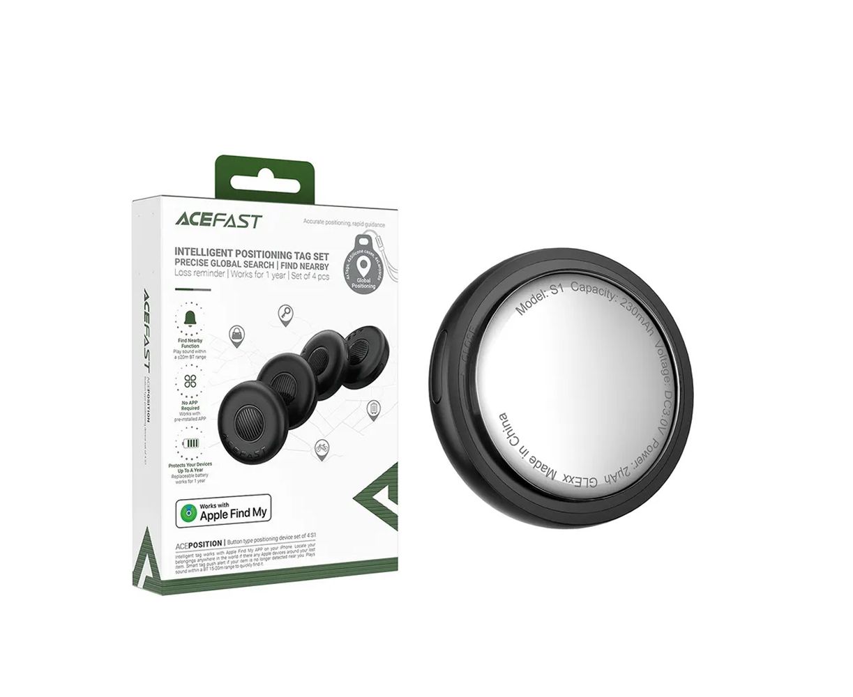 Трекер ACEFAST S1, 31*9.3mm, iP8 и выше (iOS14.5 или новее) чёрный, 1шт/уп