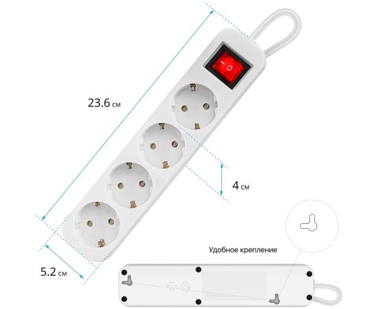 Удлинитель Defender S450 (99239) 5.0 м, 4 розетки, белый