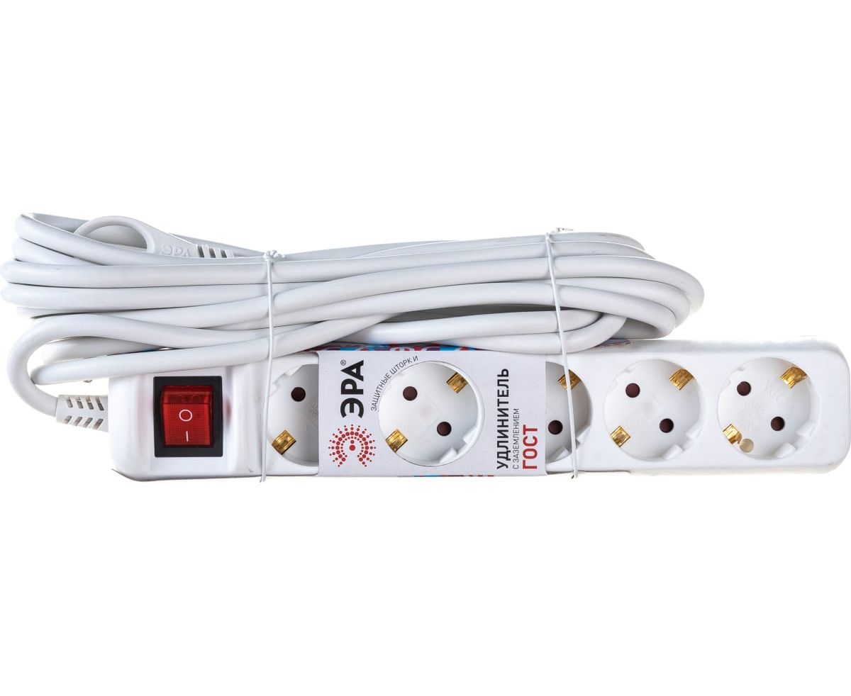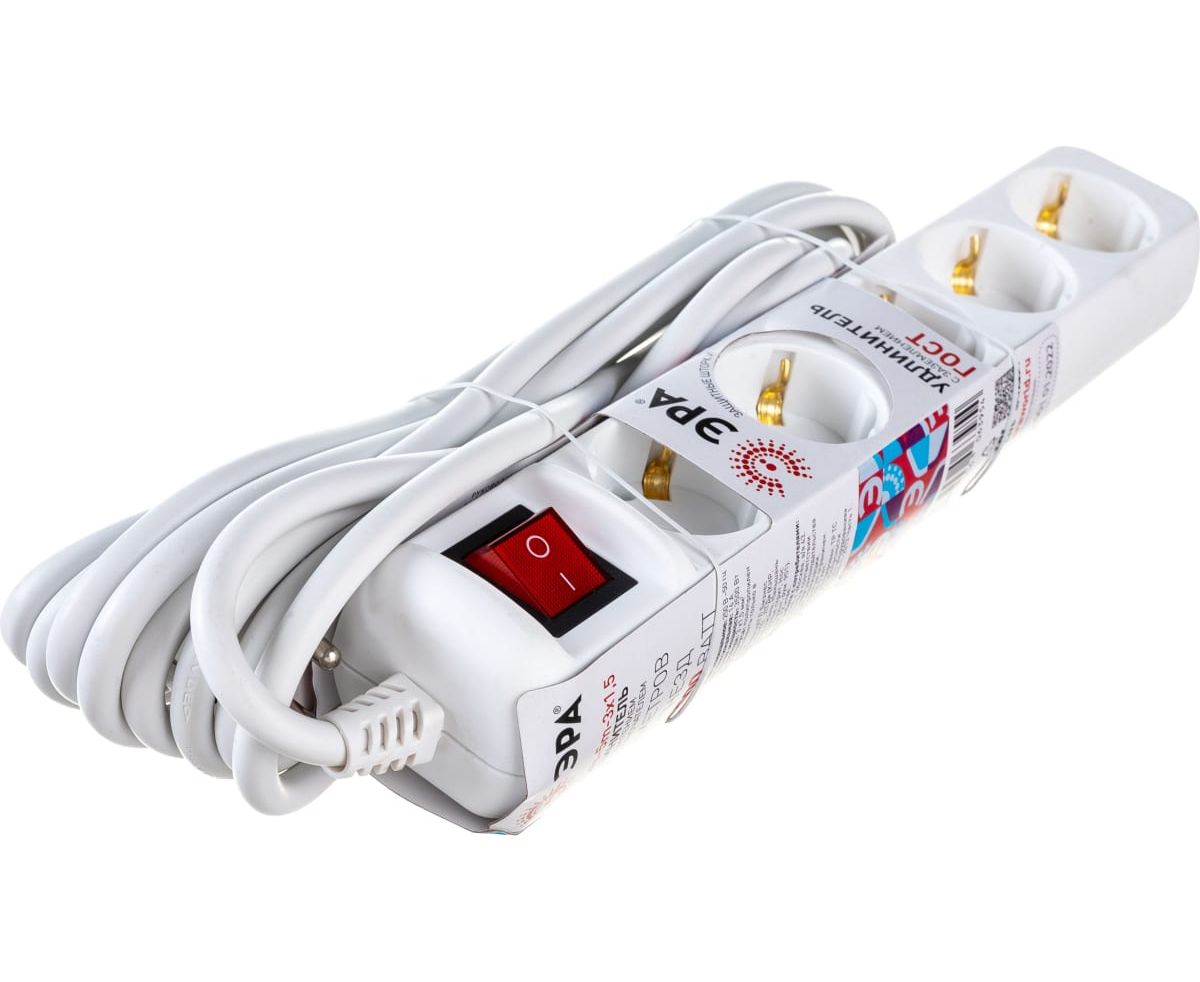Удлинитель электрический ЭРА Б0044045 U5es5m3x1,5 с заземлением с выключателем 5 розеток 5м ПВС 3x1,5мм2 16А