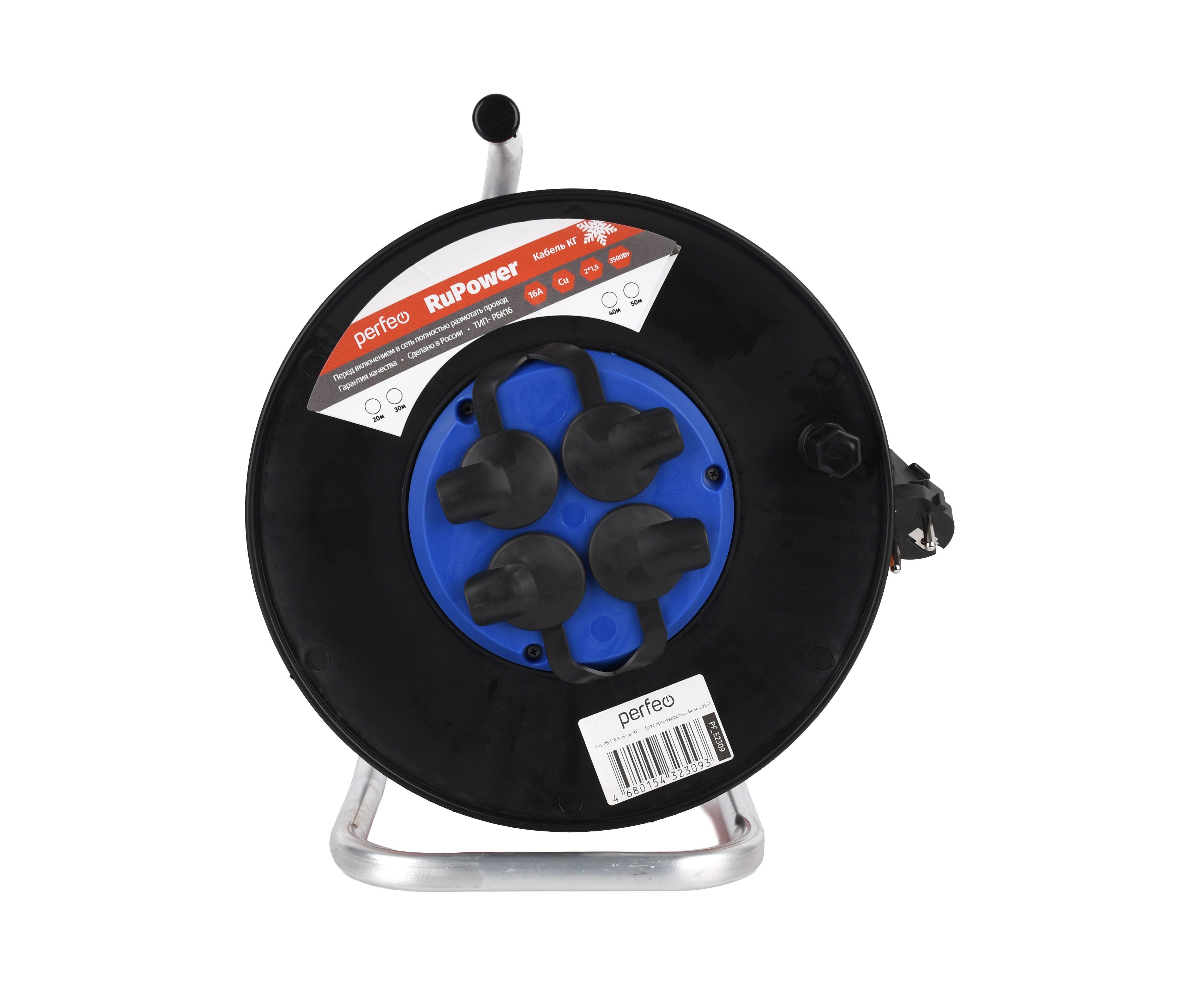 Удлинитель на катушке без заземления Perfeo "RU POWER" 20м 4гн 16А КГ 2х1,5 IP44 (РБК16) оранж