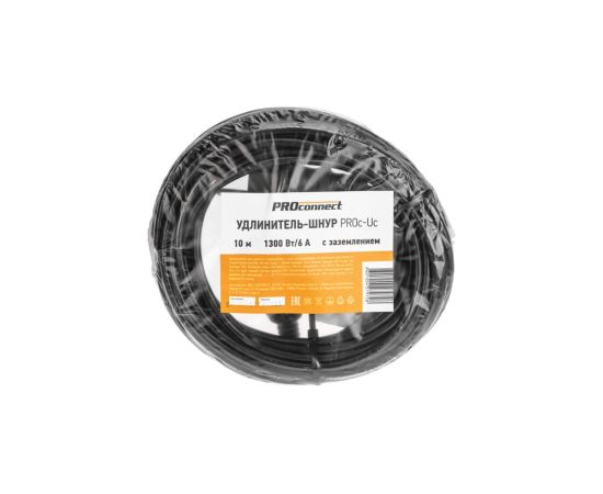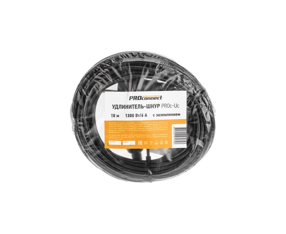 Удлинитель силовой PROconnect PROc-Uc 13-4909 2x0.75кв.мм 1розет. 10м ПВС 6A без катушки черный