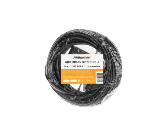Удлинитель силовой PROconnect PROc-Uc 13-4910 2x0.75кв.мм 1розет. 20м ПВС 6A без катушки черный