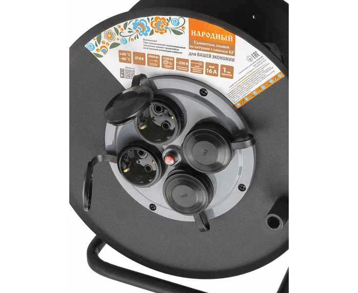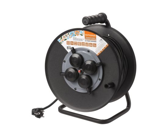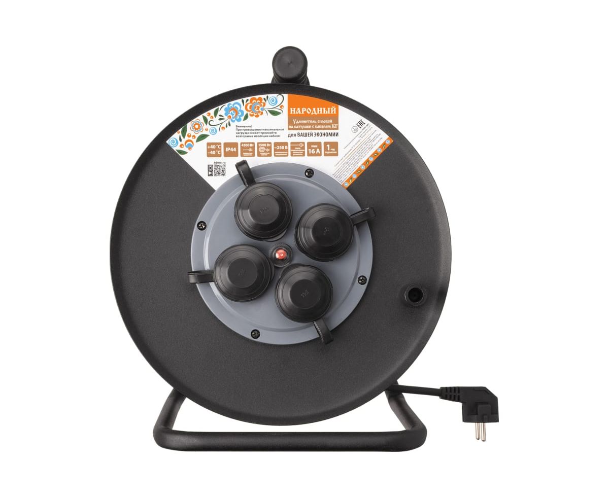 Удлинитель силовой TDM SQ1307-0172 УХз16-004 метал. катушка, А3, 4места IP44/50м КГ 4000Вт Народный