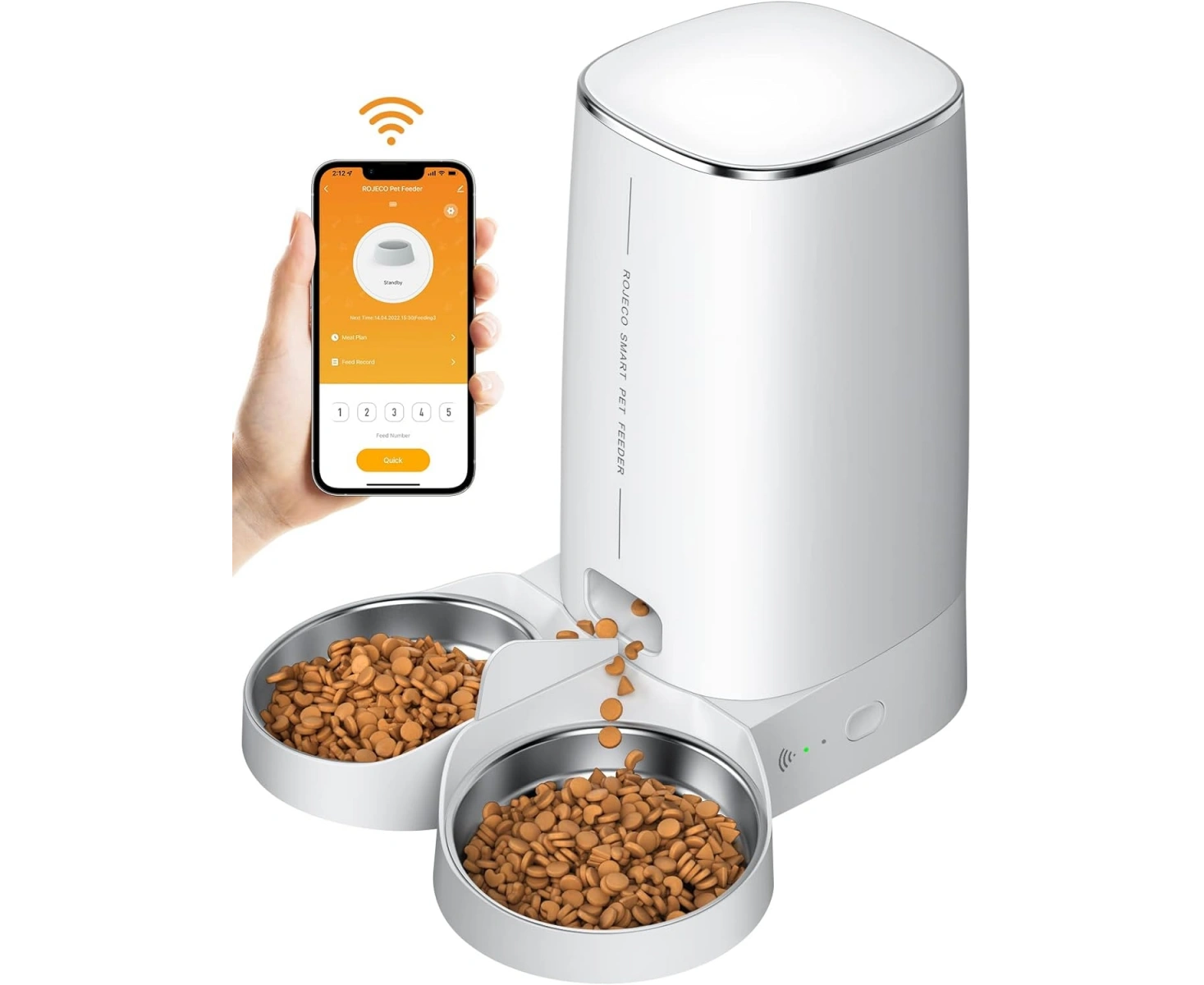 Умная кормушка для животных Xiaomi Rojeco 4L Automatic Pet Feeder WIFI Version Double Bowl EU белая