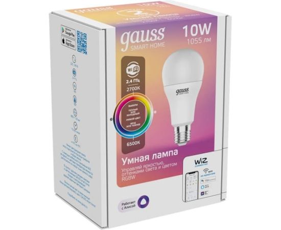 Умная Wi-fi лампочка Gauss, Smart Light RGBW E27 A60 10 Вт 2700-6500K, с изменением цвета, управление голосом/смартфоном 1180112: