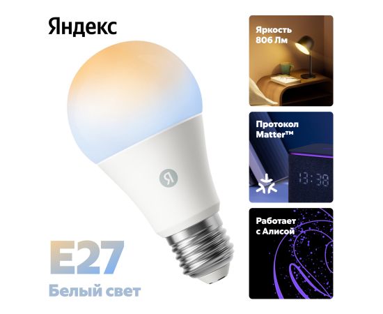Умная лампа ЯНДЕКС YNDX-00551 E27 9Вт 806lm