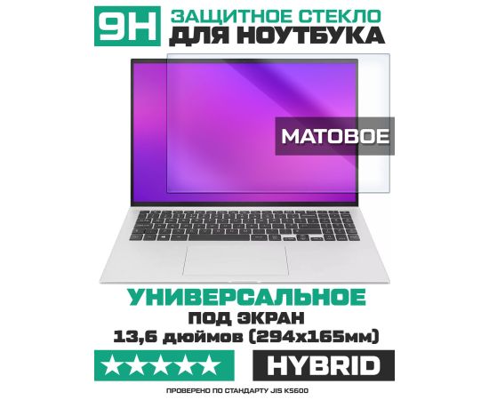 Универсальное защитное гибридное стекло МАТОВОЕ Krutoff для ноутбуков 13,6 дюймов (294х165мм)