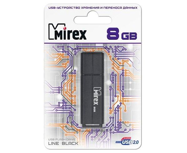 Flash Drive 8GB USB 2.0 Mirex Line, Черный (13600-FMULBK08)
