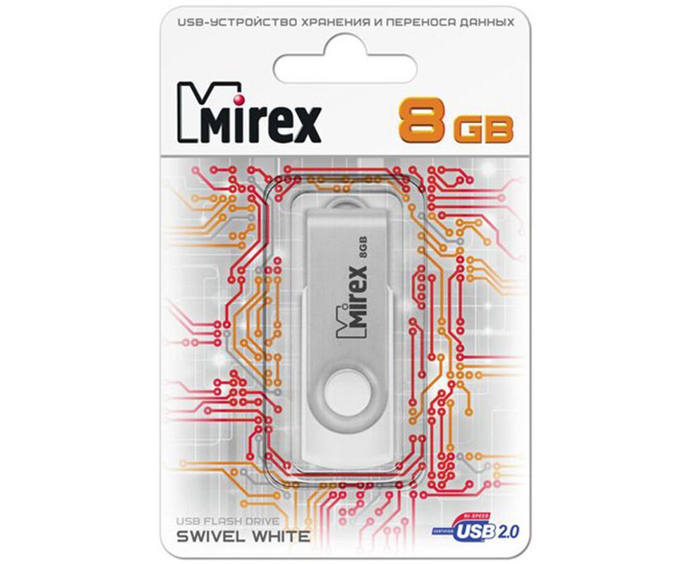 Flash Drive 8GB USB 2.0 Mirex Swivel, Белый (13600-FMUSWT08)