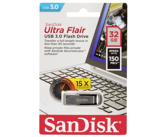 Флеш Диск Sandisk 32Gb Cruzer Ultra Flair SDCZ73-032G-G46 USB3.0 серебристый/черный