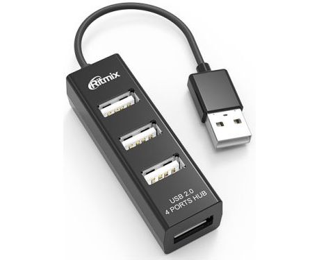 USB-HUB RITMIX CR-2402 black настольный, кабель, на 4 порта USB, High speed USB 2.0, Plug-n-Play, питание от USB, 5В, скорость до 480 Мбит/с