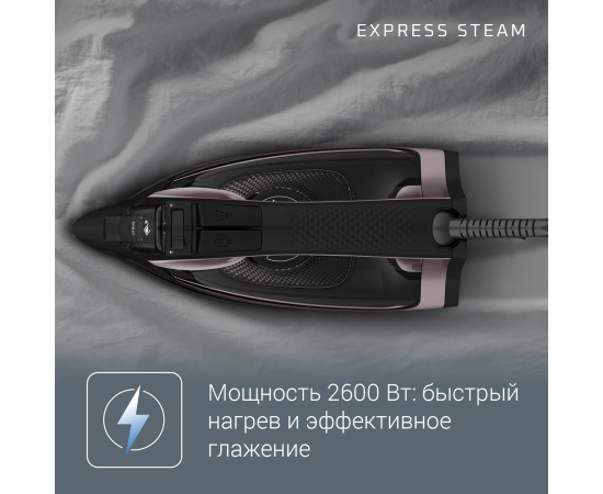 Паровой утюг обеспечивает превосходные результаты благодаря мощному паровому удару и инновационной технологии подошвы.
